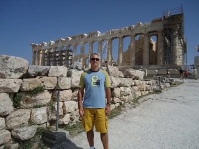 Logo que chegamos a Atenas fomos conhecer a Acrópole, mas já estava fechando e fizemos um tour muito rápido e na descida paramos em um bar para beber uma cerveja grega, aos pés da Acrópole.