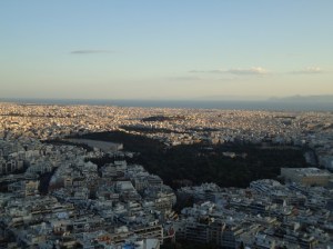Monte também conhecido como Lycabettos, Lykabettos ou Lykavittos, fica a 277 metros acima do nível do mar, o morro é o ponto mais alto da cidade. De lá você tem uma vista deslumbrante de toda cidade. Aproveitamos para jantarmos no restaurante ao ar livre.