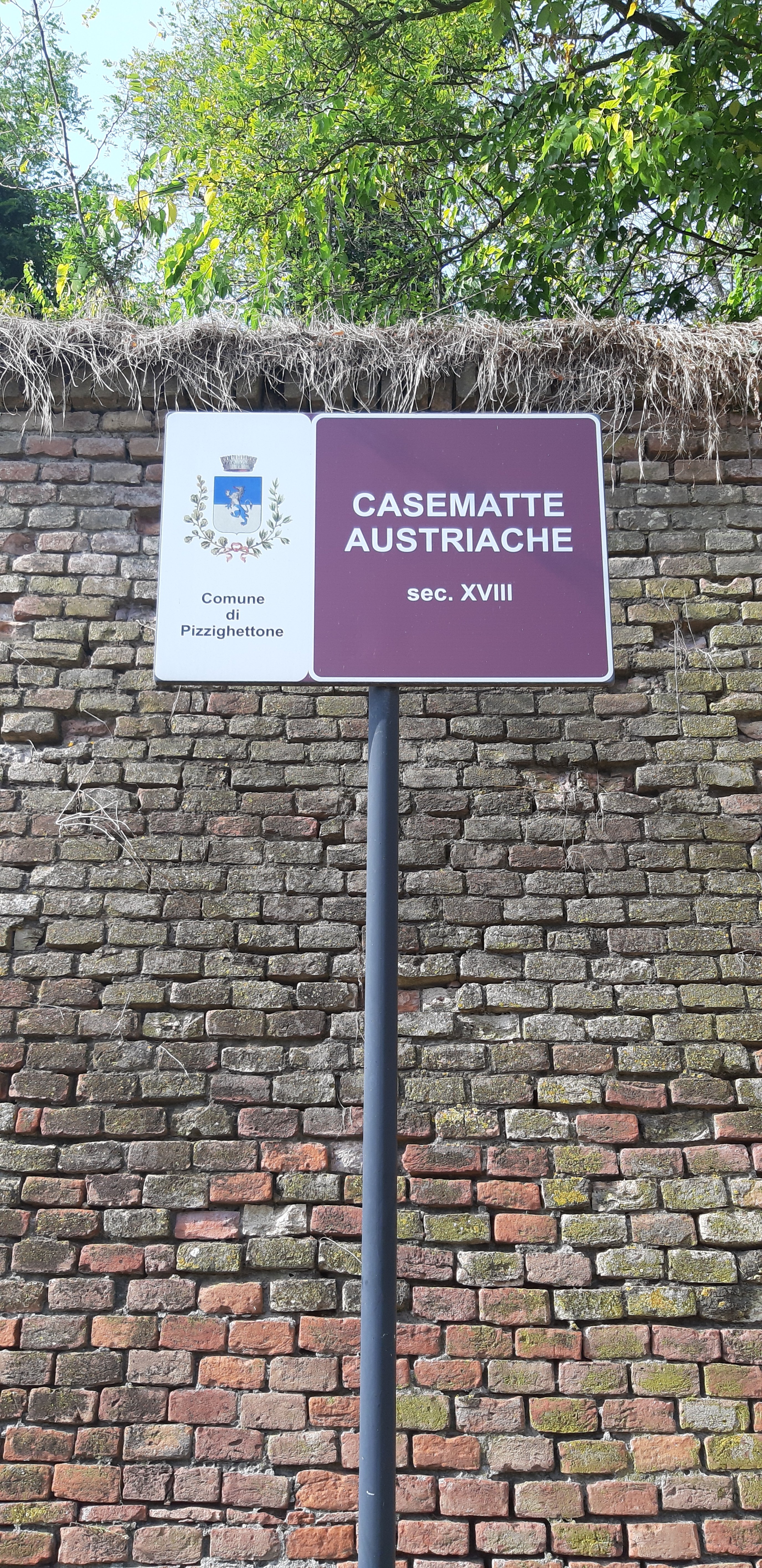 A parede cortina de Pizzighettone preserva dentro de uma série de salas abobadadas, todas conectadas umas às outras (as Casemates), e também é equipado com um Rivellino semicircular (defesa avançada da cidade militar) do século XV) e é totalmente cercado por um fosso que já representou uma defesa adicional para a comunidade. O lado sudeste das paredes termina com a revista em pó San Giuliano, enquanto a região norte abriga as células da sentença de prisão perpétua na Áustria.